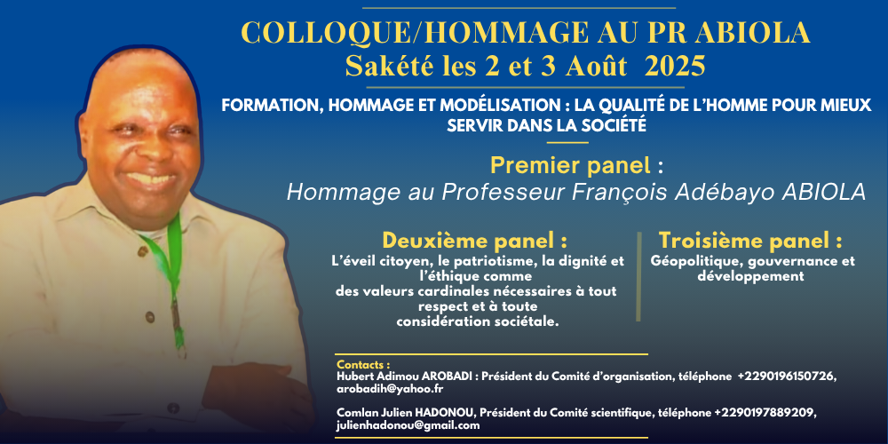 Thème du Colloque : Formation, héritage et modélisation : la qualité de l’homme pour mieux servir dans la société